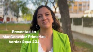 Soy Mar González, tengo 35 años y soy coportavoz de Verdes Equo Andalucía desde abril de 2021. De formación académica, soy licenciada en Historia, tengo un máster en Cultura de Paz, Educación, Conflictos y DDHH y otro máster de profesorado de secundaria. Ahora mismo estoy estudiando el Máster de Historia Contemporánea por la UOC.